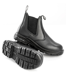 Leather upper. EN ISO 20345: 2011 S3 SRC. Elastic side panel. Water resistant. Lightweight. Steel toe cap. Steel midsole for underfoot protection. Double density PU with air cushion sole. SRC slip resistance. Oil resistance. Energy absorption, air cushion heel. Anti-static. Ventilation side panels. Heel pullers.